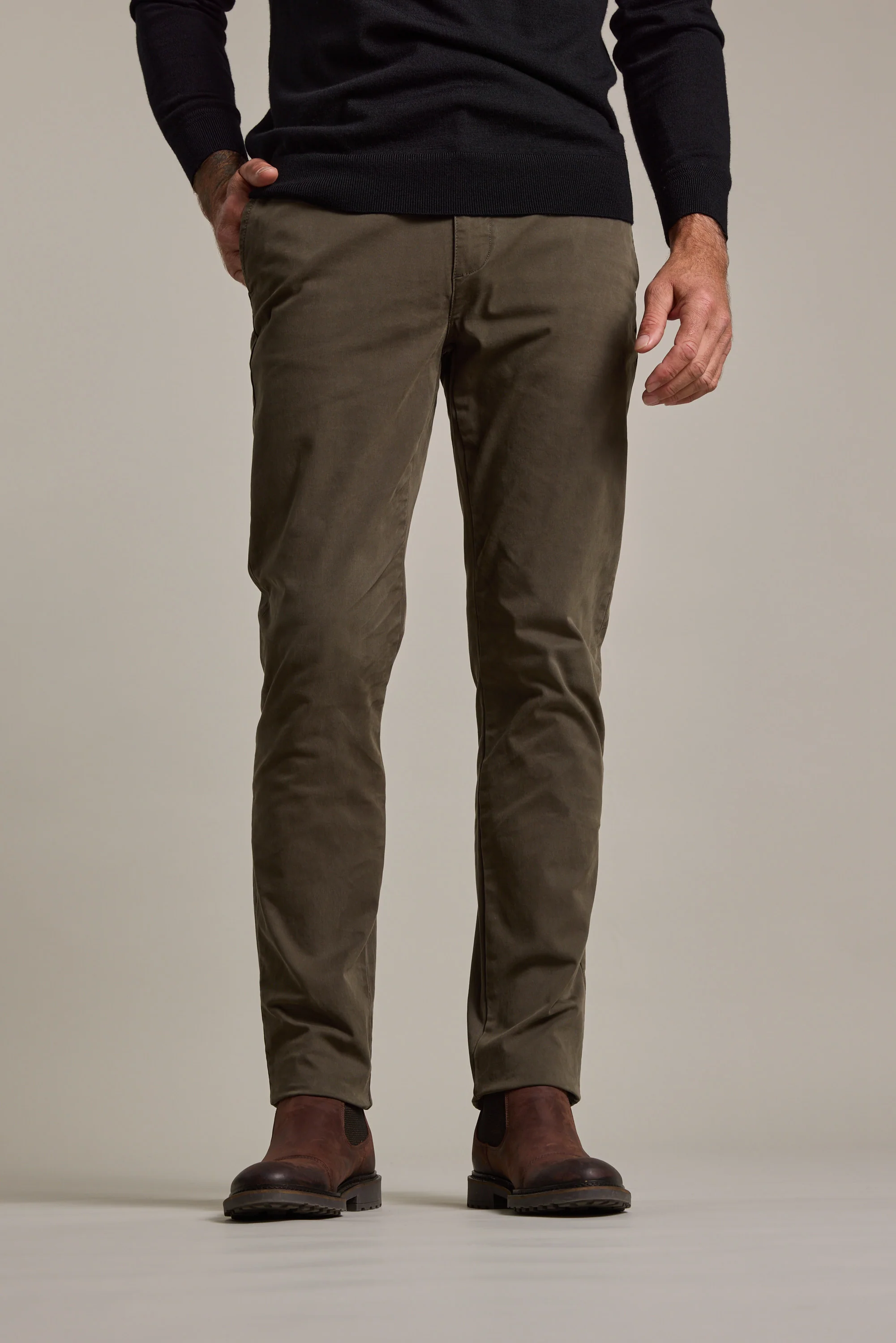 A good chino is the quiet achiever of any wardrobe — ready for work, weekends, and everything in between. The Carnaby Chino is crafted from responsibly sourced cotton with a hint of stretch for all-day comfort. Cut in a tailored fit that’s relaxed through the thigh and tapers neatly for a clean silhouette, they strike the perfect balance between ease and refinement. Finished with thoughtful touches like a tonal button closure and an in-seam coin pocket for practicality. These are chinos you’ll reach for on repeat. If you’re between sizes, we recommend sizing down for the perfect fit.
