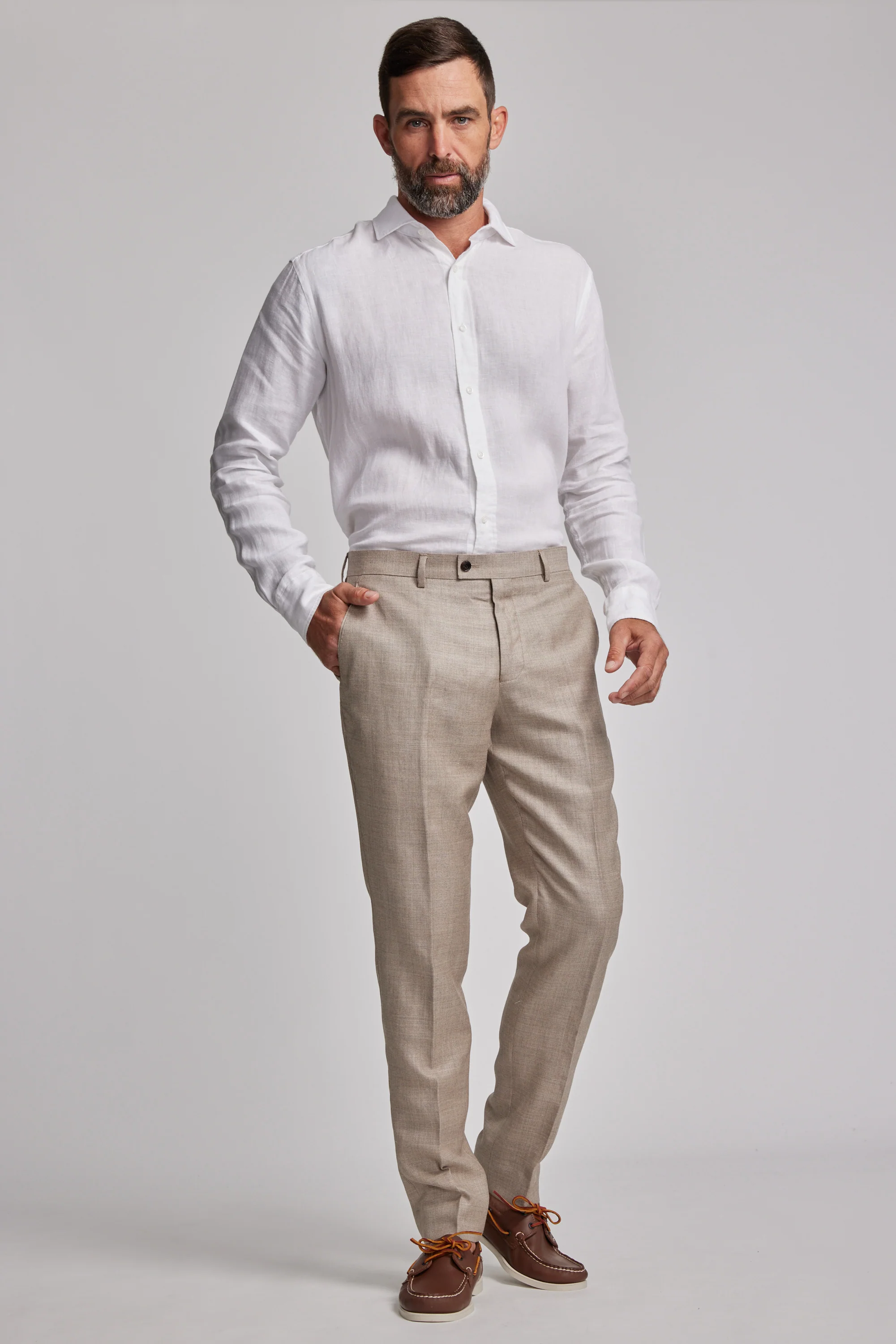 The perfect foundation for any great outfit, the Grantley Linen Suit Trouser is crafted from a lightweight and durable natural linen/wool blend. Cut in a slim tapered fit, the Grantley Linen Suit Trouser provides a polished look for all occasions; great on their own or teamed with it's matching suit jacket and waistcoat counterparts for a sharp 3 piece suit. Perfect for weddings, work, and the races, Grantley is part of a smart three-piece suit that will carry you through any event throughout the seasons.
