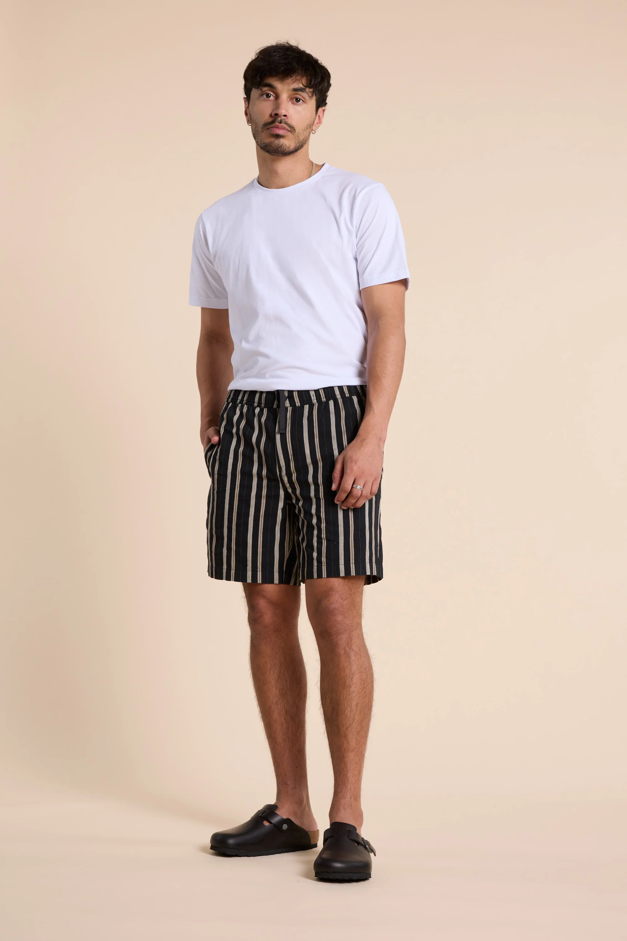 We welcome warmer days ahead with the Lawton Stripe Short. Crafted from 100% cotton, these shorts have an elasticated waist band, and a zip-fly fastening for easy wearing. Designed with front and back welt pockets to carry your necessities with ease, these shorts are a sure thing.