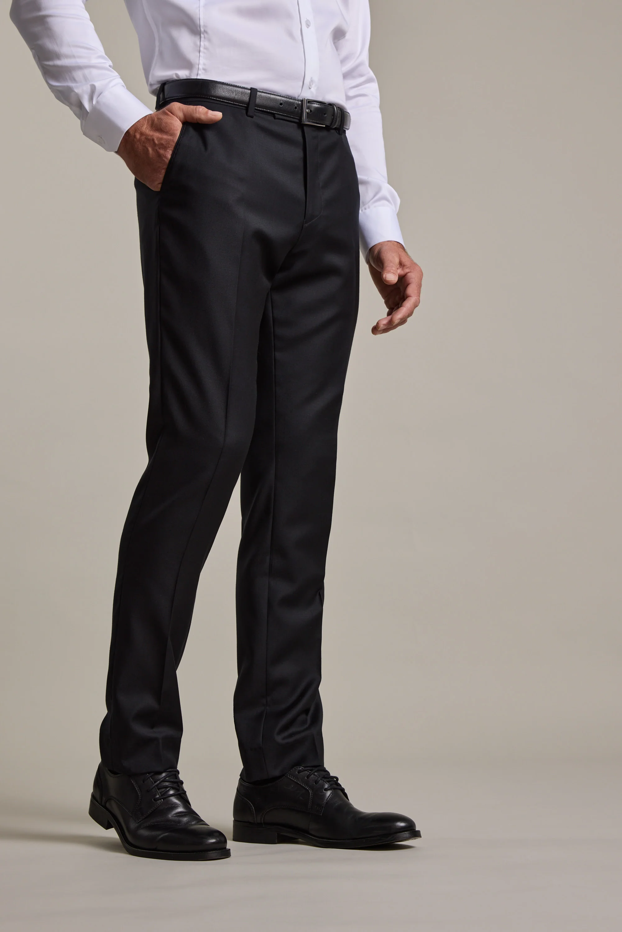 The Mayfair ZQrx Suit Trouser, part of a timless 3 piece black suit has been refined by our designers using the best and most ethical merino available. The result is a modern fit with lining down to the knee which reduces friction meaning a longer-lasting black suit trouser and more comfortable wear. Crafted from pure New Zealand ZQrx merino wool that perfectly regulates your body's temperature, insulating in the cold and drawing moisture away for maximum breathability in warmer weather. The merino is soft, high quality and free from any synthetics. ZQrx certifies their farmers are meeting the highest standards in the areas of animal welfare, environmental and social sustainability.