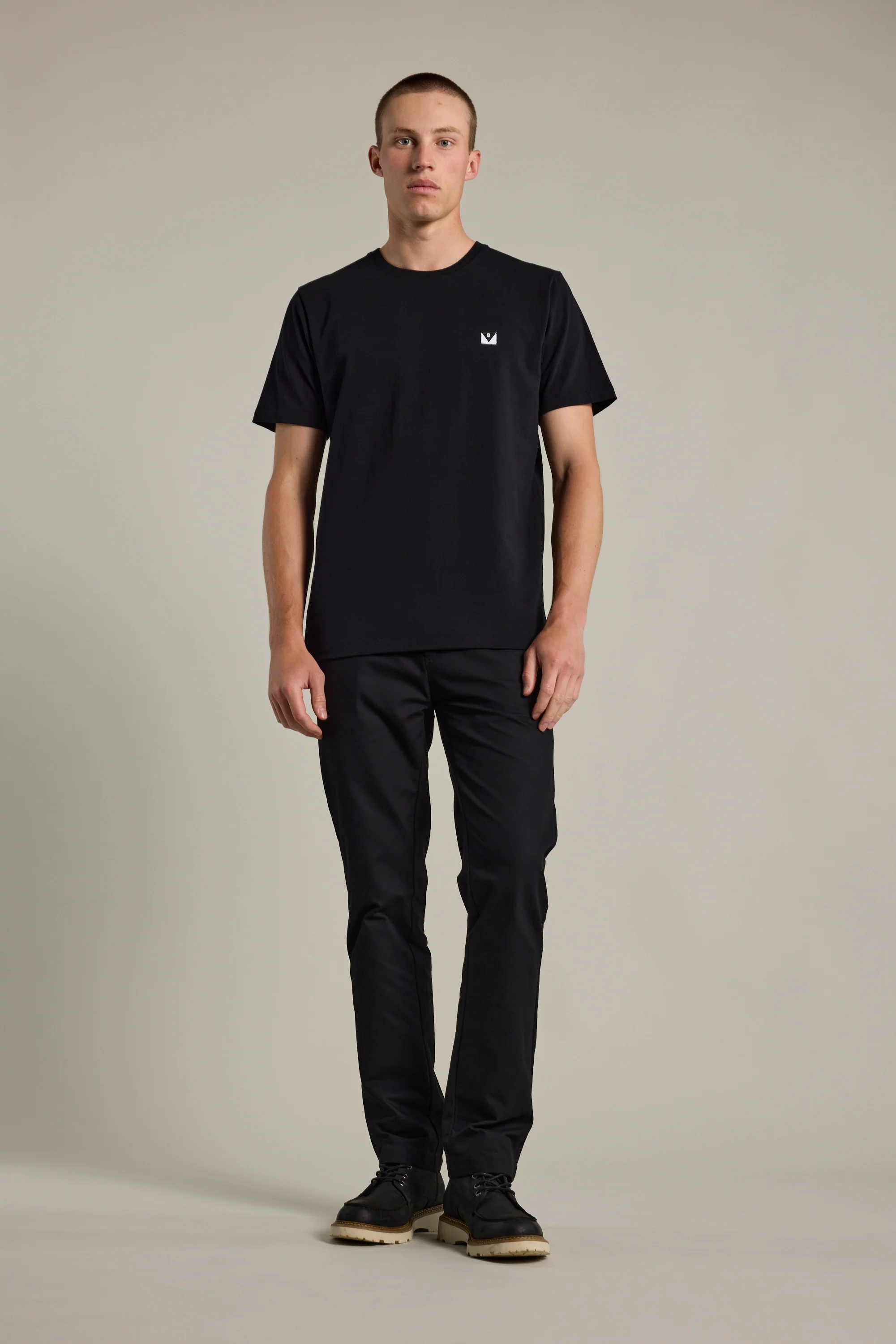 The Newton Washed Tee is a updated basic that forms a timeless foundation for any outfit. Crafted from a heavyweight 100% Organic Cotton and cut for an oversized box fit with a crew neck, blind stitch hems and BMC patch on the chest. The fabric construction has been garment dyed and washed for a vintage look that pairs effortlessly with jeans or chinos and is the perfect layering piece with overshirts or jackets when it starts to get cooler.